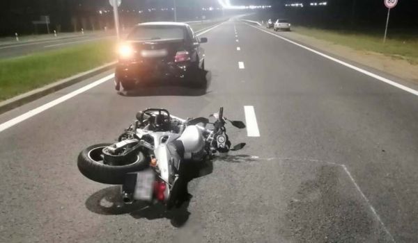 В полночь 15 июня на объездной Гродно мотоциклист неверно оценил дорожную обстановку, догнал и ударил сзади BMW. В ГАИ прокомментировали.