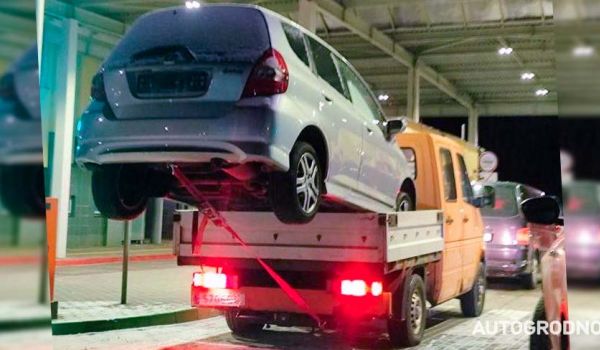 Читатель АвтоГродно на днях ехал из Литвы в Беларусь через ПП "Бенякони". Он с удивлением наблюдал, как в соседней очереди перевозят легковой автомобиль. Мужчина сделал фото и делится с нами.