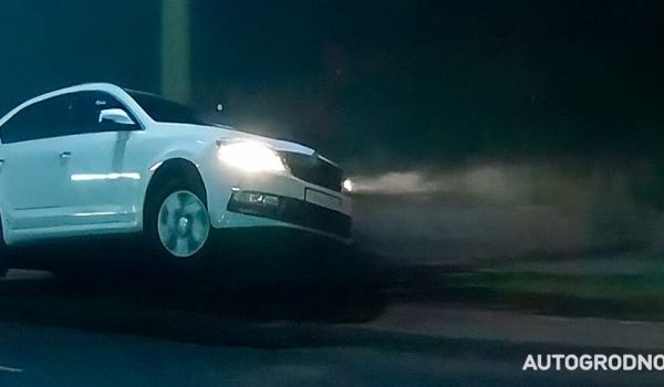 В субботу, 15 ноября, на улице Мостовой в Гродно жестко занесло Skoda – в неуправляемом заносе легковой автомобиль развернулся на 180 градусов и ударился о бордюрный камень.