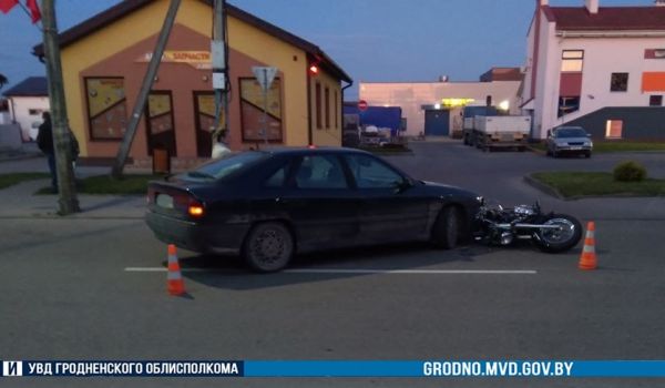 В понедельник, 8 мая, на улице Зенитчиков в Волковыске столкнулись легковой автомобиль и мотоцикл.