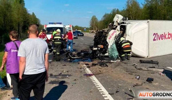 Сегодня, 10 мая, между 17:00 и 18:00 на трассе М6 произошла серьезная авария. Как сообщают читатели АвтоГродно, грузовик службы доставки догнал трактор с бревнами и опрокинулся. Кабина грузовика была деформирована до неузнаваемости.