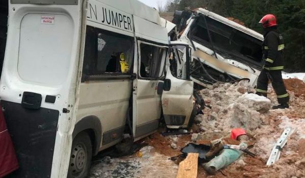 Сегодня около 15:00 на 9-м км автодороги Р69 (Смолевичи — Шацк) произошло лобовое столкновение грузового автомобиля МАЗ с маршрутным такси. 11 человек, в том числе ребенок, погибли. Об этом сообщает МВД. По информации Следственного комитета, десять пострадавших доставили в больницу.